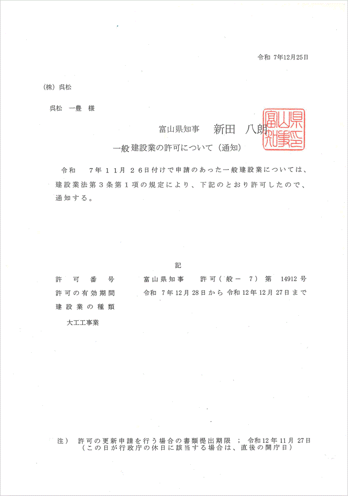 富山県知事 許可(般-2)第14912号